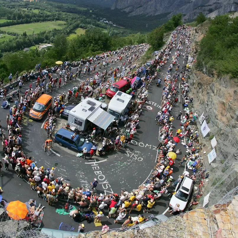 跟大部分的體育比賽不一樣,環法有部分路段觀眾是沒有圍欄的,所以也能看到騎手經過站在馬路兩旁的觀眾畫面。也有大批的遊客會下塌在賽道開始段的旅館,為了接近這些選手。而這些城鎮也會趁機安排一些節目,例如遊行等等。