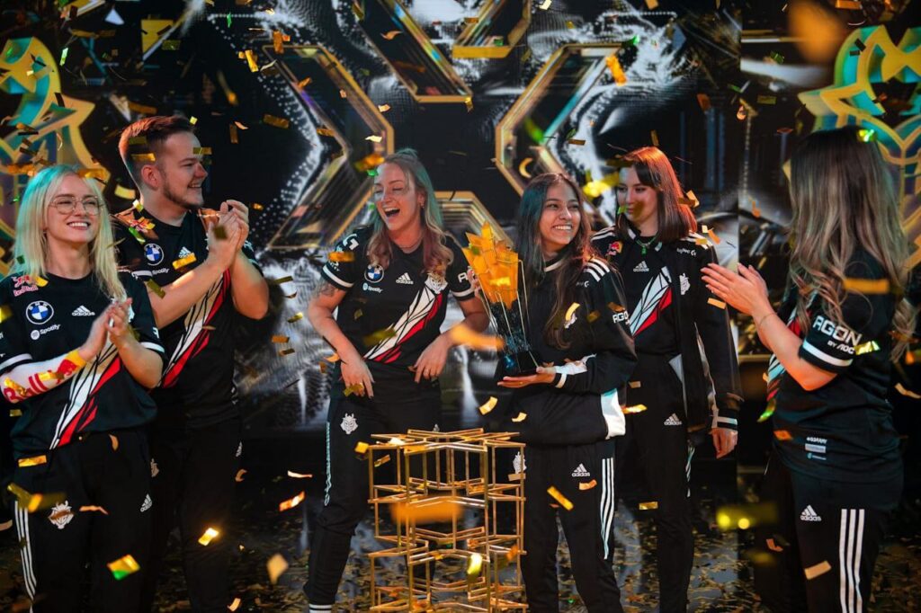 為了與男子隊區分,女子隊取名為「G2 Gozen」,於2021年組建後就一直保持良好的成績。在2022年的VCT Game Changers Championship中她們擊敗北美的Shopify Rebellion獲得首屆冠軍(圖10),陣中的超新星Mary橫空出世在決賽中大殺四方,可惜在2023年因學業離開賽場。2023年她們仍打到VCT Game Changers Championship三強,可惜在敗部決賽中輸給了Team Liquid Brazil。2024年她們對陣容大幅度的調整,老成員只剩下mimi和Petra。