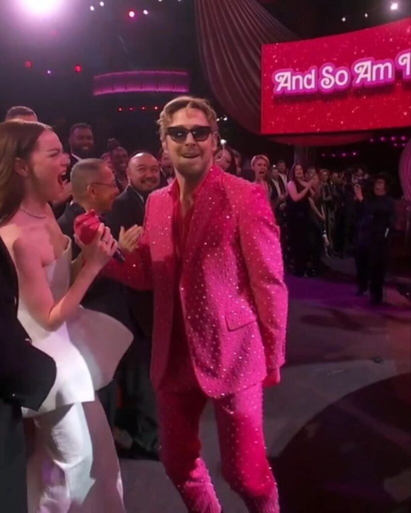 圖9:Ryan Gosling表演《芭比》中的原聲帶”I’m Just Ken”,除了與劇組互動外也與合作多次的Emma Stone互動。