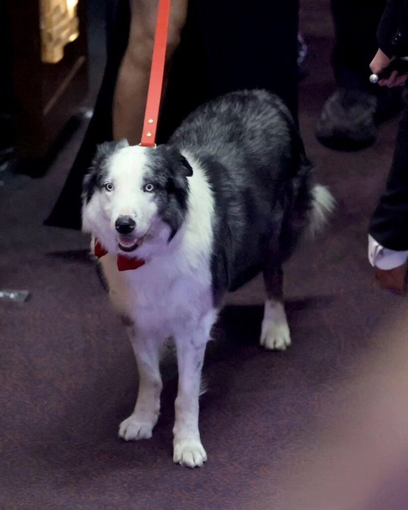 圖7:《墜惡真相》中的人氣狗狗Messi順利出席,此前傳有多家電影公司投訴Messi並非提名者,卻被帶到入圍者晚宴,可能會幫助電影宣傳。好在仍成功出席,還被拍到跟全場一起拍手的畫面。
