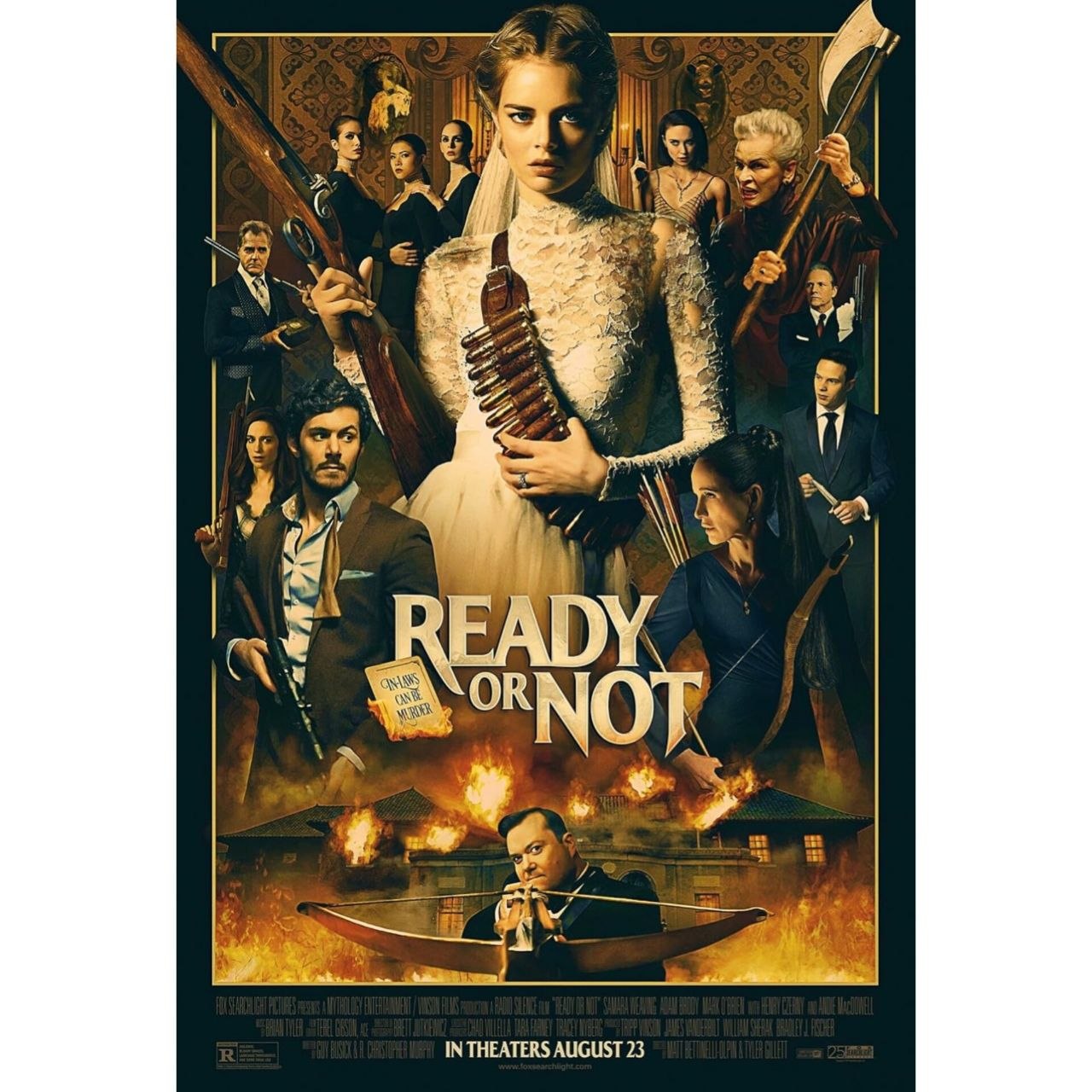 《弒婚遊戲》講述由Samara Weaving飾演的女主Grace在新婚之夜嫁入富豪Le Domas家族後,被迫參與一項古怪的家族傳統遊戲,原本以為只是單純的捉迷藏,卻發現自己其實成為被獵殺的目標,整個家族必須在天亮前將她殺死,否則將遭遇神秘詛咒。隨著Grace在豪宅中四處逃亡,她逐漸揭開這個家族與惡魔契約的真相,也在極端生存壓力下從無辜新娘轉變為反擊的倖存者,最終成功撐到天亮,並親眼看著家族成員一一爆體身亡,留下滿身鮮血卻活下來的自己,成為電影最大的爆點。