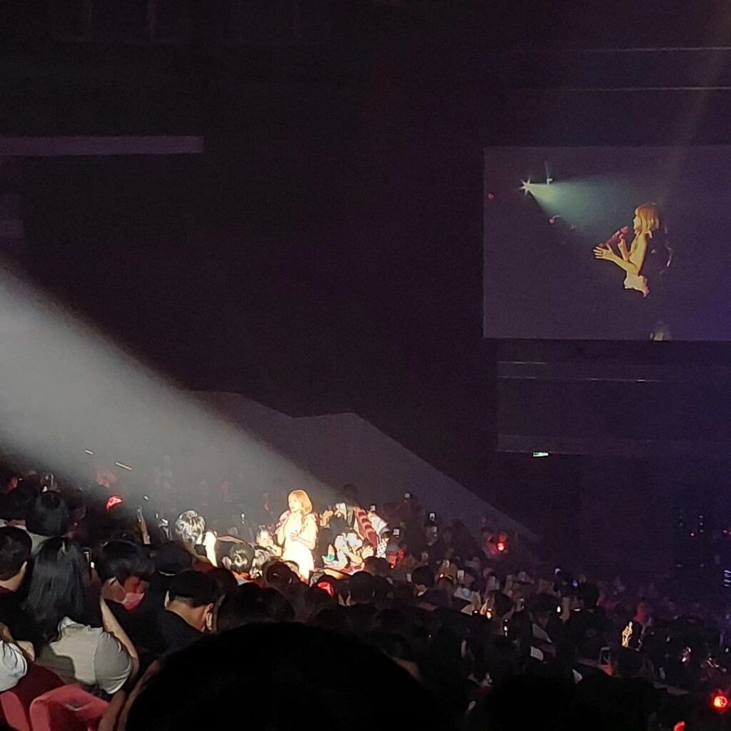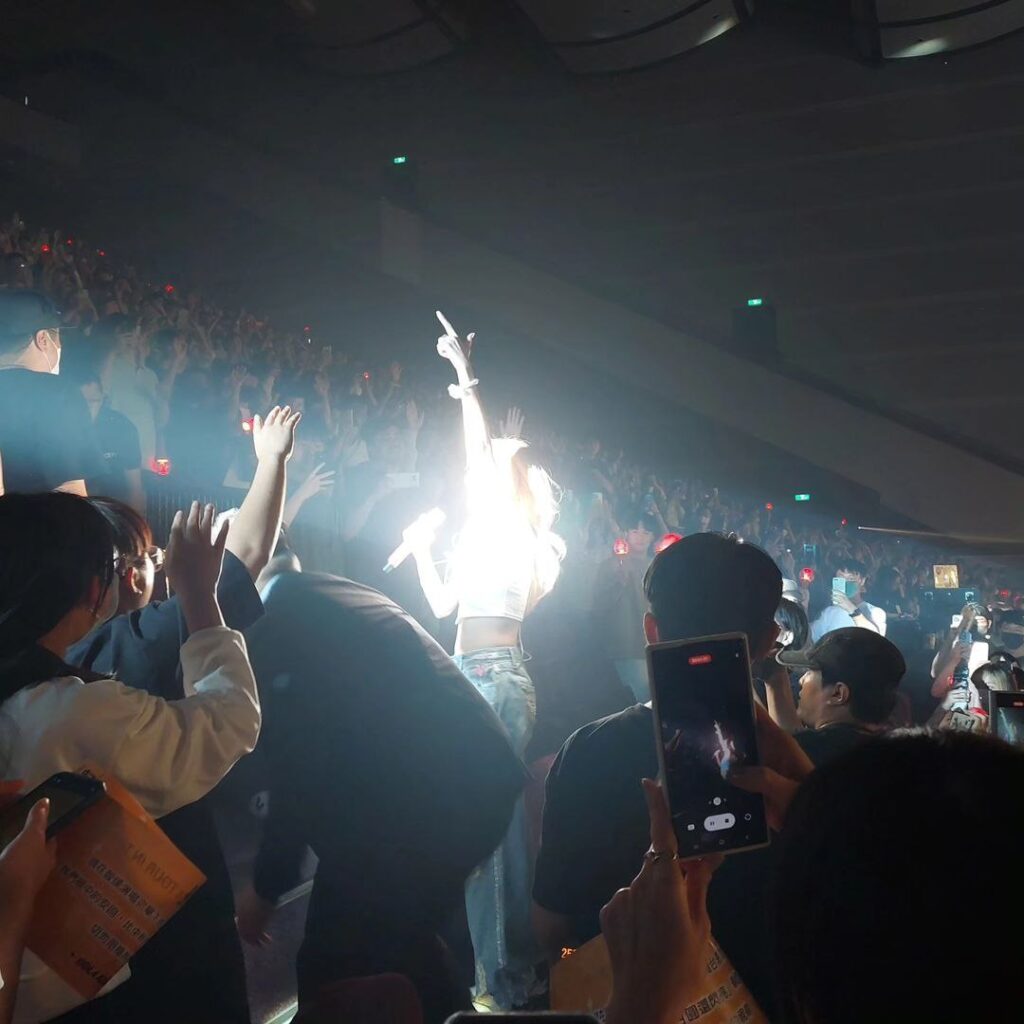 雖然抱著就是去享受音樂的心態去看,但這幾天還是把歌單聽了一遍。演唱會在TICC,上次STAYC見面會也是在TICC所以算有經驗,不過這次的位子比上次前面一點。演唱會六點開始,總共分三段,第一段就正常在台上唱歌,第二段突然跑到觀眾席裡唱歌,第三段則是叫大家站起來聽,其中唱到熱單Travel還滿場跑,有一段在我面前唱跳一陣子(圖4)。