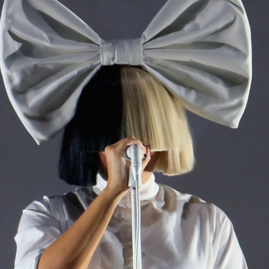 7.Sia靠著單曲”Cheap Thrills”成為繼2000年Madonna的”Music”之後再度有超過40歲的女性可以登上冠軍寶座。當Sia在演出時都會蓋住自己的臉(圖8), 她曾表示「我當歌手已經10年、11年了,而且不是很有名的那種。我之前是一個酒鬼和毒蟲,但後來我戒了且下定決心不再當個藝人,因為我開始有點名氣,而這點有點影響到我。所以我就在想:『現在流行音樂界裡缺少的是什麼?』答案是神秘感。你知道,就連大家去看牙醫都要po上instagram。」
