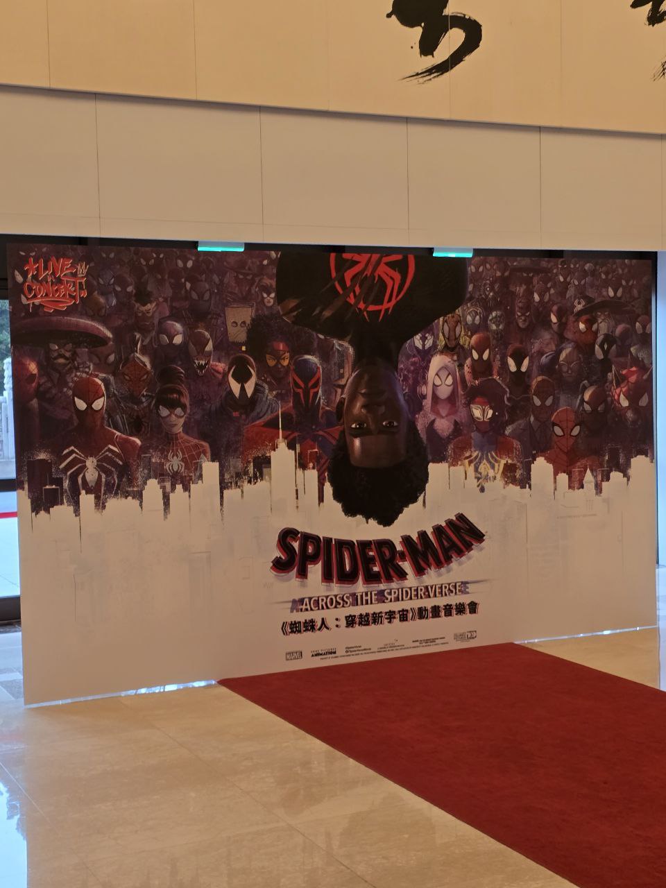 《蜘蛛人:穿越新宇宙》動畫音樂會在上次的《蜘蛛人:新宇宙》動畫音樂會一年後來台,與上次的概念差不多,一樣在國家音樂廳(甚至買的座位都差不多),一樣配有DJ在旁邊打碟。