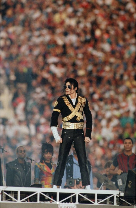 Michael Jackson可以說是讓世人開始注意中場秀的最大推手。當他跳進舞台後,他先站在原地享受了觀眾接近一分半的鼓譟聲,接著才開始表演。他一共表演了四首歌曲,特別的是當他在演唱<Heal The World>時,圍繞著他的是由3000名小孩組成的合唱團。這場中場秀也是大部分的觀眾公認史上最棒的一場表演。