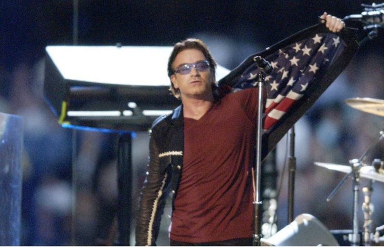 U2的表演在駭人的911事件發生後的四個月。U2先是演奏了他們的名曲<Beautiful Day>,接著透過<MLK>以及<Where the Streets Have No Name>向911的罹難者們致敬。當大螢幕上投影出罹難者名單時,主唱Bono秀出了他夾克中的美國國旗,頓時群情激昂。所有受到傷害的美國人,都被U2給治癒了,人們的心也團結在一起。