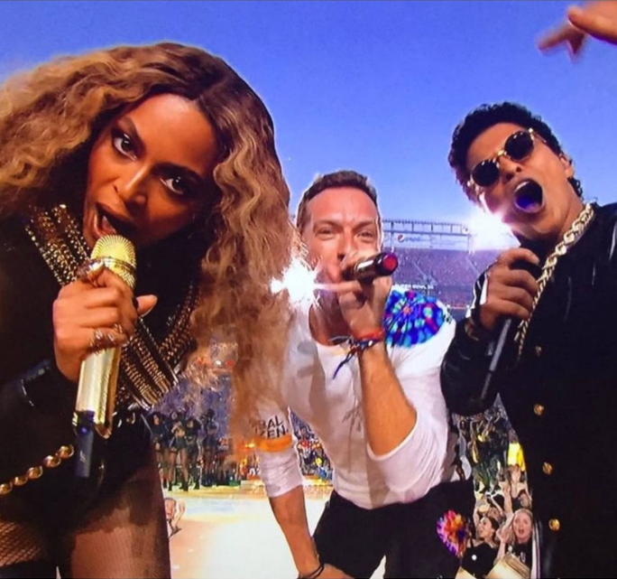 這年Coldplay找來了Beyoncé與Bruno Mars助陣,很難得可以看到這幾個巨星同台演出。Coldplay先演奏了幾首自己的名曲<Yellow>,<Viva La Dida>,<Paradise>等等。接著Bruno Mars登台表演了<Uptown Funk>,Beyoncé則表演了新歌<Formation>。最後三人還一同合唱新歌<Up&Up>,配合舞台區繽紛色彩的Love字樣,讓整場表演畫下句點。這場表演很多人批評的點是「喧賓奪主」,甚至笑說Coldplay是最大輸家。但在我看來我倒覺得沒那麼差,我比較注重的是他們之前的互動,畢竟這種陣容可不是平常能看到的啊。