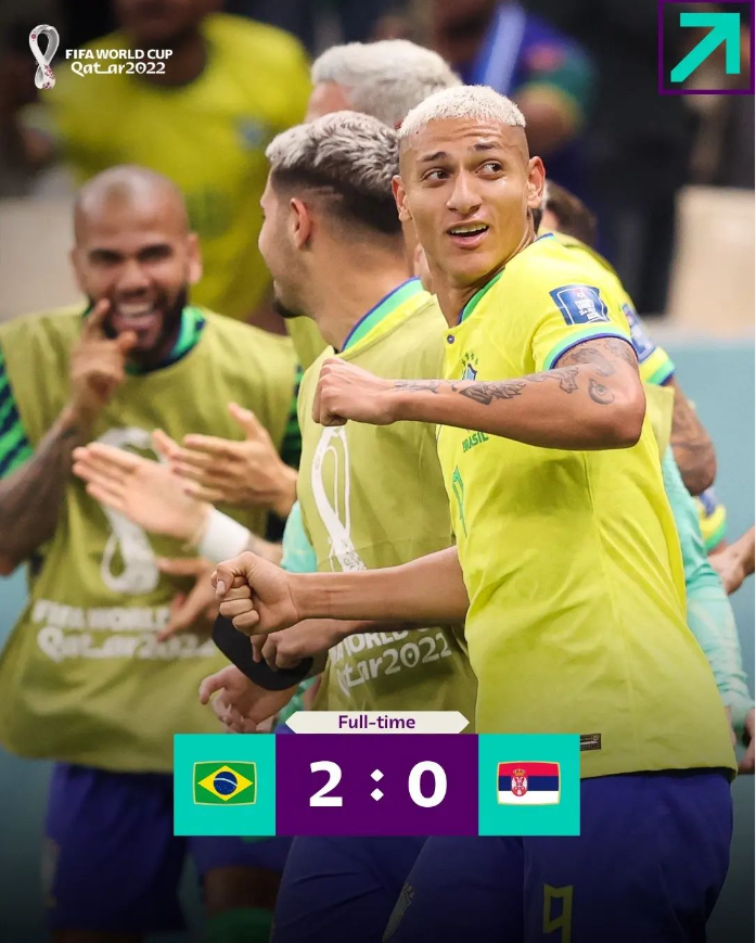 巴西隊Richarlison一個人貢獻了兩球,其中第二顆絕對是本屆目前為止最精彩的進球,世界波。