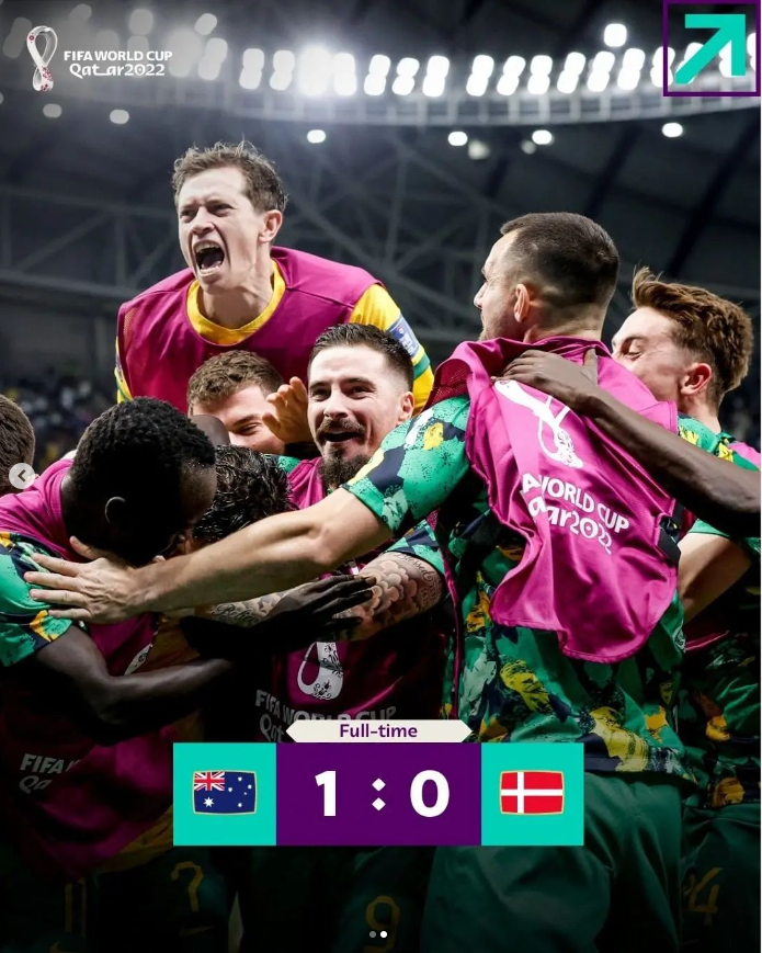 而另一邊的澳大利亞也是小爆冷擊敗了丹麥,成功與法國攜手晉級16強。