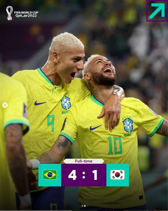 巴西與韓國之戰,巴西上半場靠著VINICIUS JR、NEYMAR、RICHARLISON以及PAQUETA接連進球,非常快的就取得四分的領先,讓比賽很快就沒有什麼懸念。下半場韓國靠著白勝浩一顆世界波,逃過了被剃光頭的命運,巴西4比1輕鬆獲勝。這場過後,也宣告亞洲球隊全部淘汰。