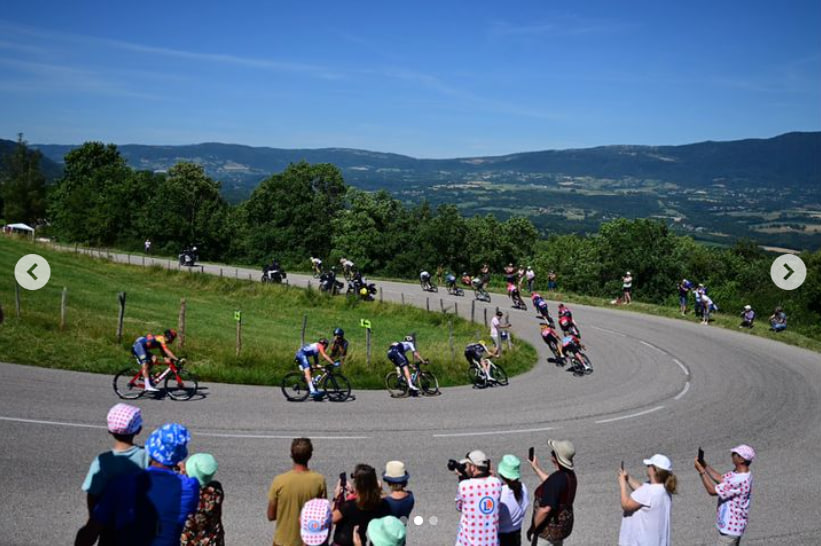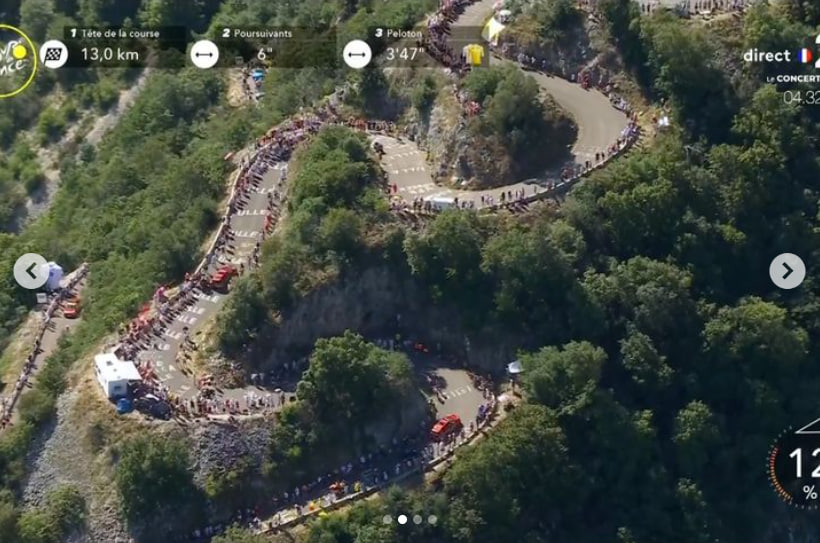 這一站的終點是一個HC超級坡Grand Colombier,車手必須沿著彎來彎去的坡(圖2)抵達終點。