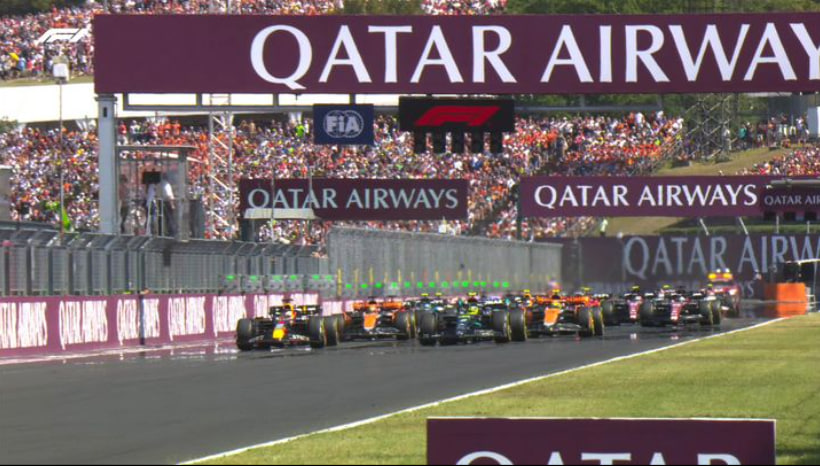 實際上跑起來卻不是這麼一回事。第一圈Hamilton就掉到第四,第二位發車的Verstappen則是「正常發揮」衝到第一。周冠宇不知道是怎麼了,超慢的起跑除了自己掉位子,也間接讓兩台Alpine撞車,雙雙第一圈退賽。比賽沒有出安全車,剩下的人就這樣順順得跑完。