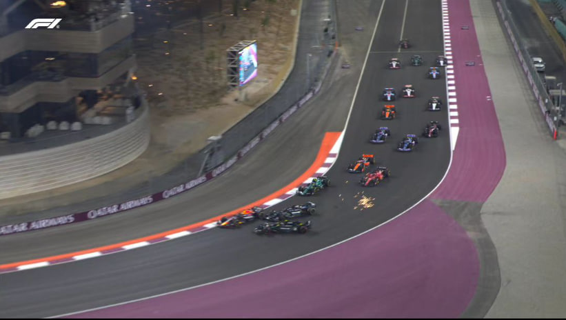 開賽第一彎兩輛Mercedes就戲劇性的自撞,Hamilton退賽、隊友Russell掉到隊尾去,讓後面的車手有機可乘。(Hamilton在賽後發推表示是自己的錯,對隊友感到抱歉)若不是這次碰撞,Mercedes蠻有機會在這站上台。