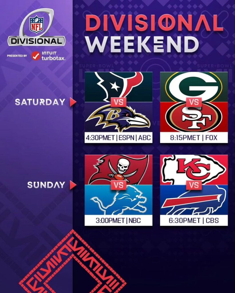 下一輪的比賽將在台灣時間週日凌晨展開(圖5圖6),順序分別是休士頓德州人作客第一輪輪空的巴爾的摩烏鴉;綠灣包裝工作客第一輪輪空的舊金山四九人;坦帕灣海盜作客底特律雄獅;坎薩斯酋長作客水牛城比爾。