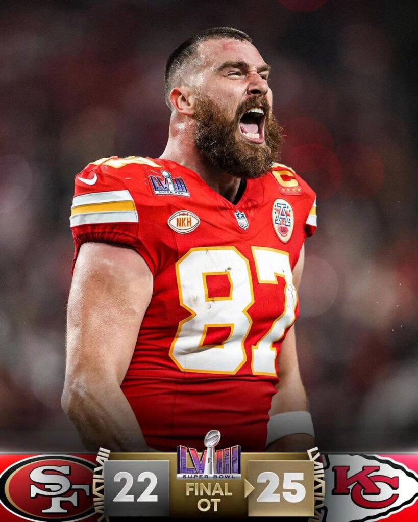 這是超級盃歷史上第二次延長賽,上一次是在2017年新英格蘭愛國者對上亞特蘭大獵鷹(獵鷹球迷心中永遠的痛)。現在的延長賽已經改制,”兩邊都至少有一次控球權機會,無論先攻方有沒有得分,後攻方都有一次進攻機會,除非先攻方被safety收場”。延長賽49人採取地面進攻,不過最後仍選擇用踢球拿3分。球權回到酋長,在關鍵4檔需要1碼,結果順利推進。接著Mahomes又自己帶球跑了13碼,最後在端區前傳給了Mecole Hardman完成再見達陣(圖4),成功逆轉戰局,以25比22擊敗了49人(圖5)。賽後,49人表示他們不清楚季後賽延長賽規則,也沒有討論相關策略;反觀酋長這邊表示球隊花了很多時間討論延長賽策略,或許就是這些小細節影響了戰局。