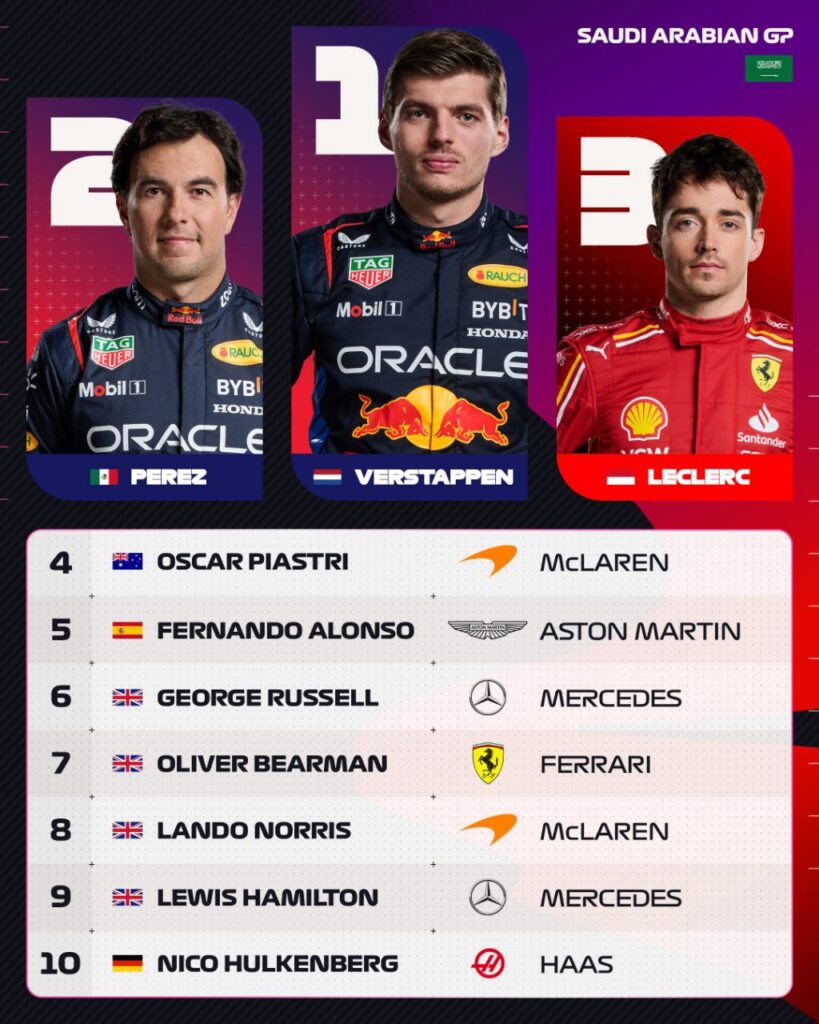 Red Bull兩輛一樣無敵發揮,一二帶回,這季Pérez的表現好像比上季穩定,或許這就是他們需要的完美二號車手。能贏過別隊,但又不會對Verstappen造成威脅。Verstappen這場奪冠是生涯第100個頒獎台,他還從未在賽季前兩場連續奪冠,今年是第一次。