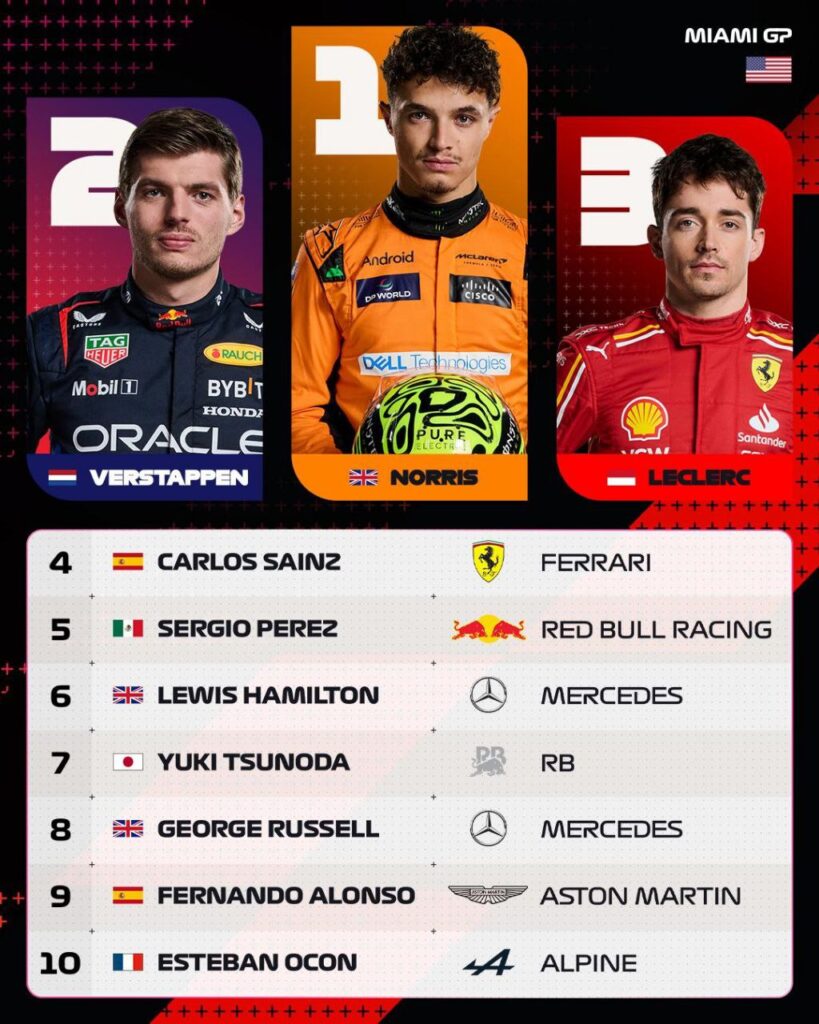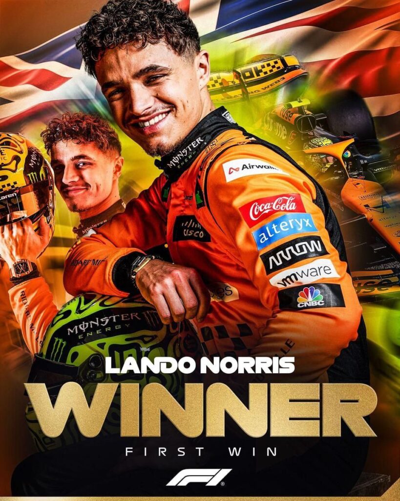 Norris在此站之前已經跑了110場,登上15次頒獎台(為登上頒獎台最多次卻無冠的車手),終於成功奪得分站冠軍。在此之前,2021年義大利與俄羅斯都有機會奪冠,一次因為車隊立場、一次因為雨戰賭注與冠軍失之交臂。這次奪冠,眾車手也紛紛祝賀,足以顯見車手間的好感情。隊友Piastri雖說開賽一度衝到第二的位置,但比賽中途因為更換鼻翼而落到後方,運氣不是太好。McLaren在這站做了不少升級,目前看下來非常有效,期待之後幾站他們的表現。