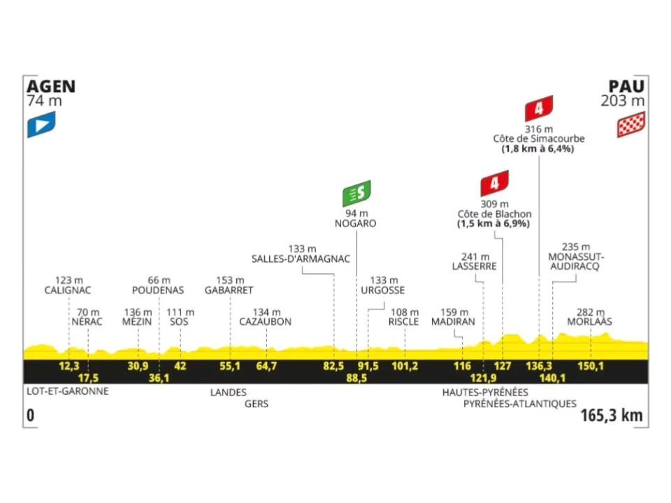 率先到達Côte de Simacourbe山頂的Tobias Halland Johannessen與Richard Carapaz在距終點21公里處被大集團追上。在終點前有發生一波車禍,影響數名車手,不過最前面的衝刺手們並沒有受到波及。