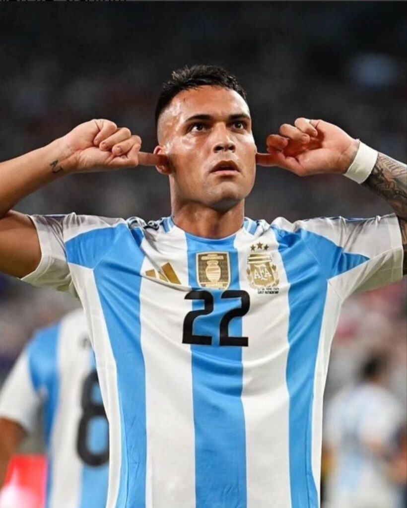 決賽上半場兩隊0:0,兩邊的防守都蠻粗暴的,不過美洲盃就是這樣,哥倫比亞有不少得分機會但都被守了下來。下半場Lionel Messi在66分鐘自己滑倒拉傷被換下場,坐在場邊的他也被捕捉到落淚的畫面(圖4),大概是知道自己在國家隊的日子不多了,沒辦法戰到最後很不甘心。下半場兩隊對抗仍然很激烈,但都沒沒人得分,結束兩隊仍是0:0。美洲盃只有決賽有30分鐘的加時,先前的比賽都是正規時間結束後直接進行PK大戰。延長賽兩邊越來越粗暴,但裁判好像也沒有要管的樣子。第112分鐘,延長賽才被換上來的Lautaro Martínez(圖5)終於打進雙方的第一球,這也是他本屆賽事第5顆進球。最後阿根廷就以1:0非常艱辛地擊敗了哥倫比亞,2021美洲盃冠軍、2022世界盃冠軍、2024美洲盃冠軍,目前世界排名第一的阿根廷建立了一個小王朝。