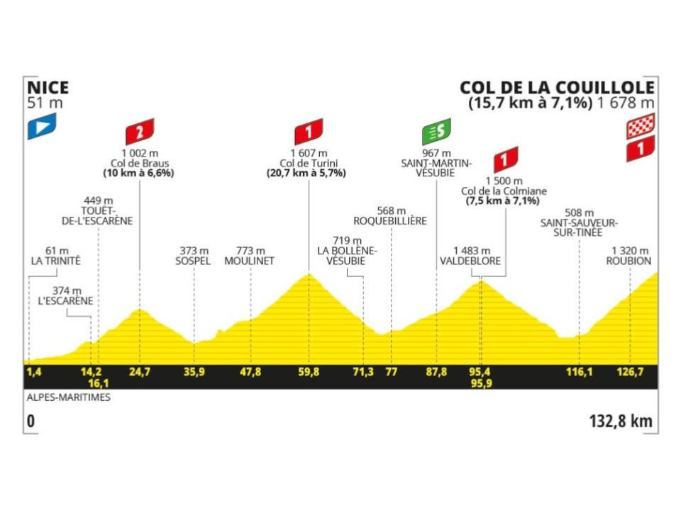 這站完全可以看出兩位「火星人」與其他「地球人」的差距。本站共有4個分級坡,當在攀登最後一個坡 Col de la Couillole時,逃脫車手領先主集團有2分45秒的差距,不過逃脫車手群在爬坡時也一個一個的瓦解。Enric Mas與Richard Carapaz在距終點前11.4公里前展開攻勢,只有Romain Bardet可以勉強跟上他們。而在後方的GC榜車手們則是在終點前5公里前由Jonas Vingegaard展開攻擊,Tadej Pogačar緊咬著他,排在第三的Remco Evenepoel則被甩在後頭。