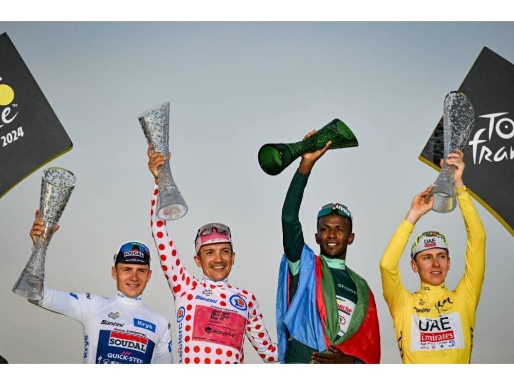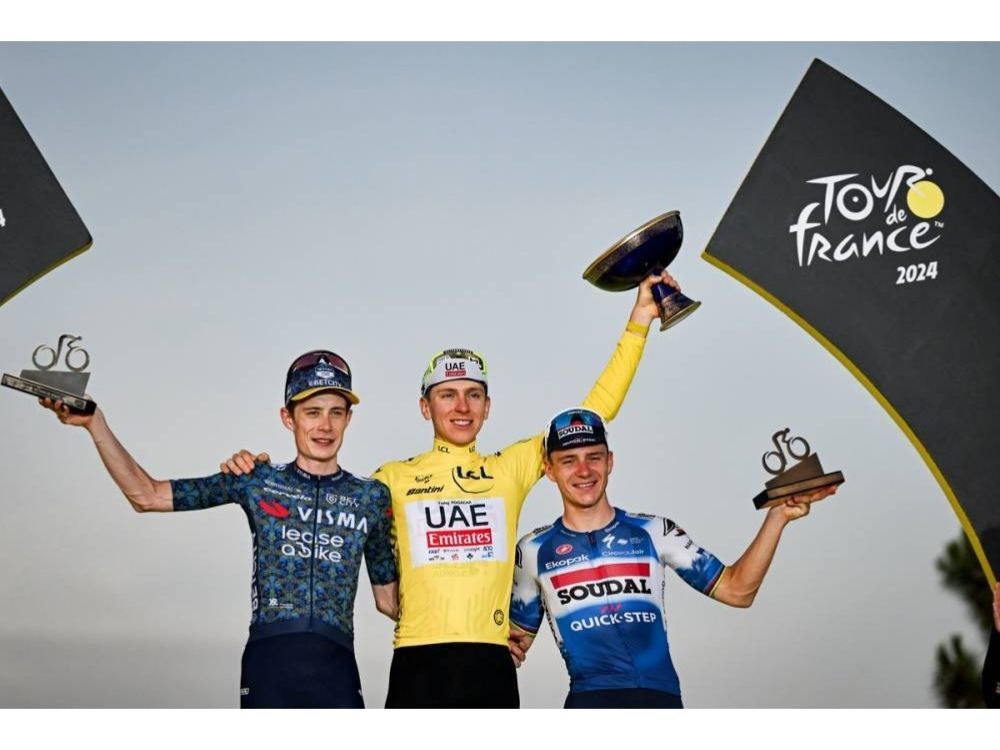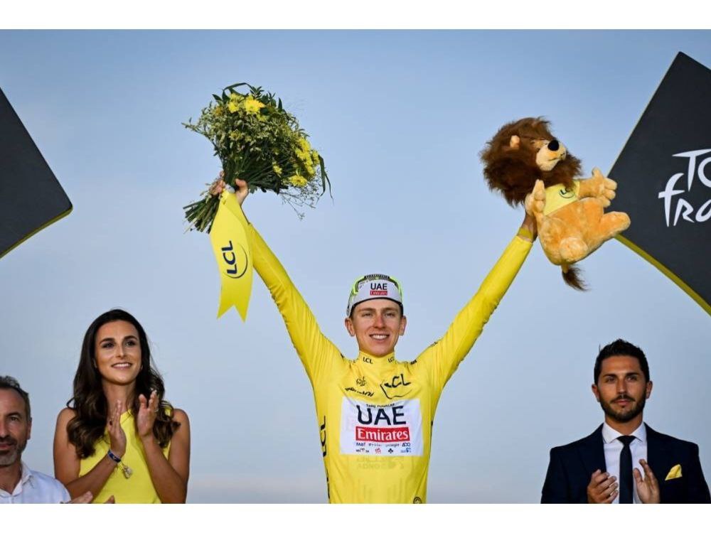 Pogačar曾在2020、2021年奪冠,後續兩年則是Vingegaard連霸兩年,這一年冠軍又回到這位斯洛維尼亞車手,他奪下生涯第三座環法冠軍。排名第二的Vingegaard總成績落後第一總共6分17秒,不過他在三個月前才因為車禍動過大手術,馬上就能殺回環法舞台簡直不可思議,希望明年這兩人都能以最完美的狀態參賽。首次參賽的Evenepoel就能站上頒獎台,他落後第一總共9分18秒,也是最終的白衫車手。Pogačar賽後也表示他很享受與這麼多好手一起競爭的感覺,並表示現在是自行車運動最棒的時代。他還放話要挑戰Mathieu van der Poel的Rainbow Jersey。