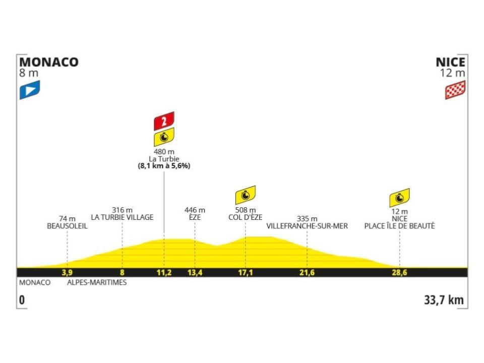 賽段安排在摩納哥,也跟平常舉辦摩納哥大獎賽的位置一樣,路線先爬緩坡再結束於下坡終點。在今年獲得破紀錄的第35勝的Mark Cavendish是第二位發車的,他在觀眾夾道下騎完了生涯最後一站,賽後他也特別上台接受頒獎。