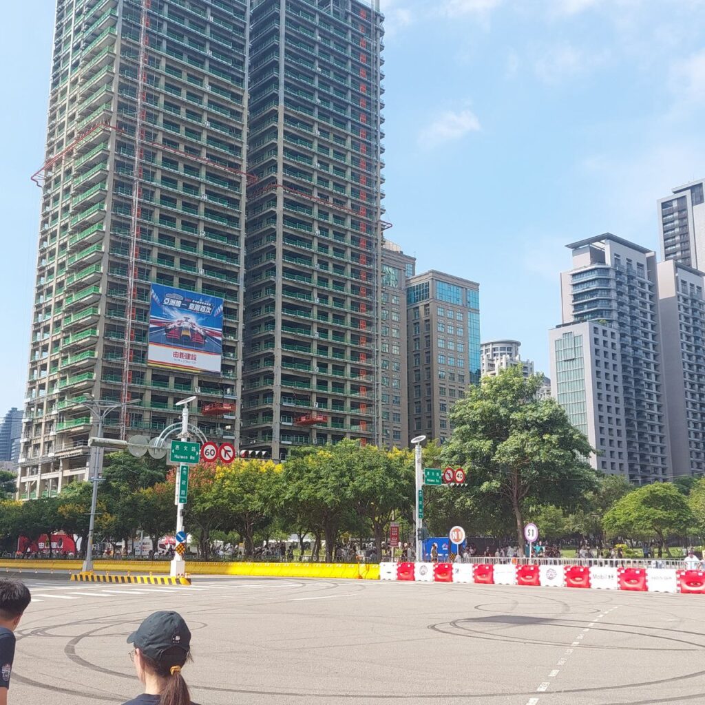 到了現場之後發現其實站在路邊也看得到轉播、旁邊的大樓陽台也是站滿了人,不過只要花500,就可以近距離感受到賽車呼嘯而過的感覺(現在出國看也看不到這台),還是很值得的。最後Yuki在跑完最後一趟並做完「甜甜圈」之後,引擎燒了起來,不過車隊人員是很快就將火滅掉,人也沒事。現場氣溫高,加上速度慢沒辦法有效散熱,車輛燒起來算蠻正常的(別被低能台媒帶風向了…),平常想看火燒車也不是想看就能看到的。Yuki在最後的所有演出結束後,也乘坐汽車繞場接受全場歡呼。