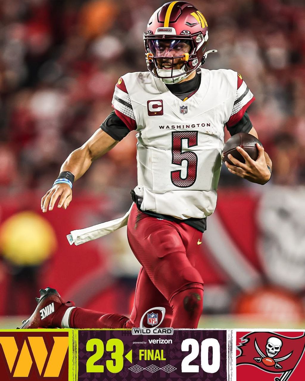 Daniels在這場傳出了268碼、2次達陣、0抄截、跑了36碼,是首個能在季後賽傳球和衝球領先全隊的新秀,搭配上表現也相當出色的新秀外接員Terry McLaurin,拿下自2005年後隊史第一場季後賽勝利。Daniels也是隊史繼1937年的Sammy Baugh後,再度有菜鳥四分衛帶領球隊贏球。Mayfield這場18中15,傳球185碼、傳出兩次達陣也表現不俗,可惜就是關鍵失誤葬送比賽。