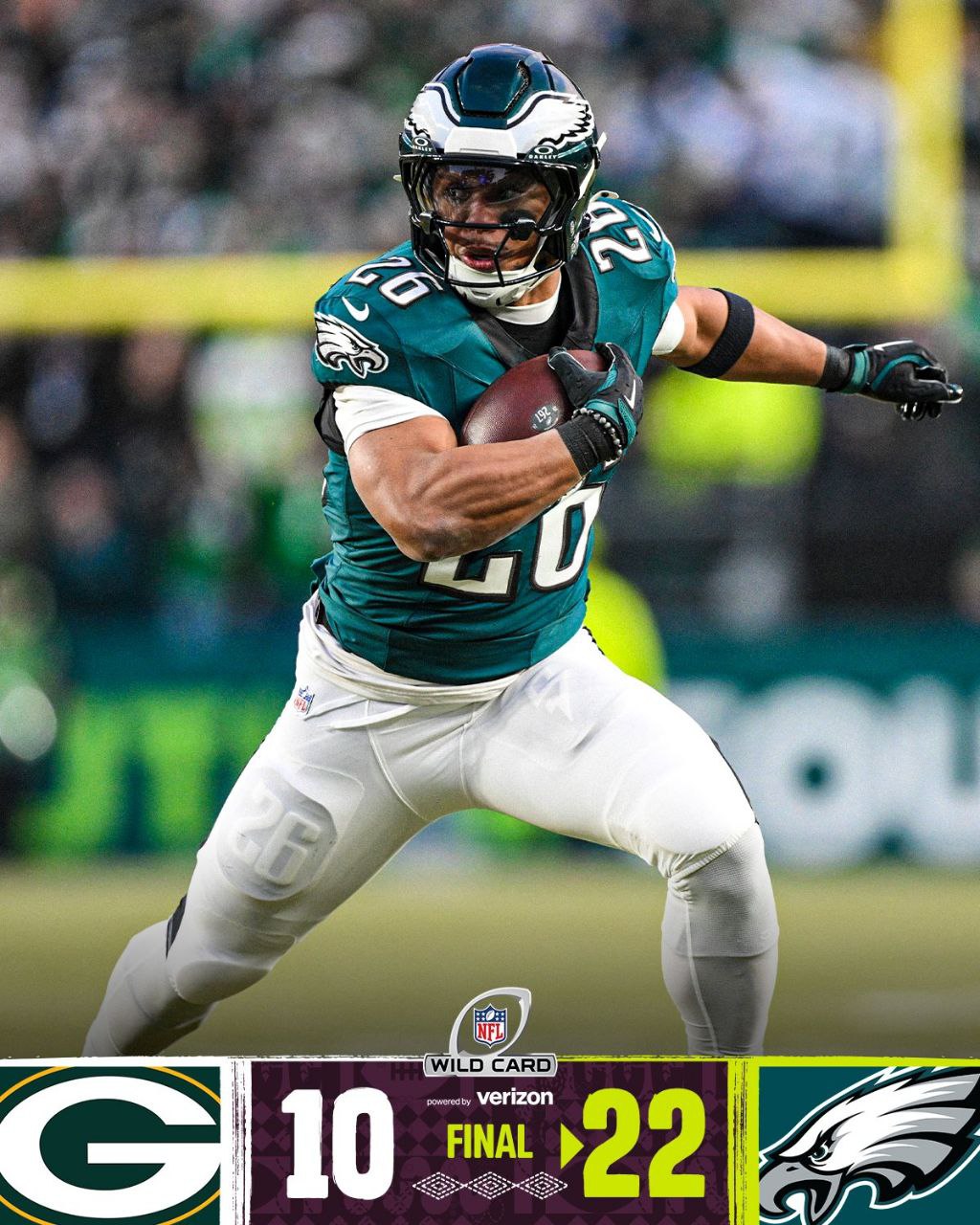 包裝工一開賽要接球回攻就掉球,讓老鷹開賽就在一個很有利的地方進攻,開賽沒多久就先達陣得分;再加上後來的一次踢球,老鷹第一節打完10:0領先。正當以為這會是場進攻大戰時,兩隊的進攻在第二節都完全熄火。包裝工這邊陸續傷了幾名進攻大將,僅能依賴Josh Jacobs的跑陣,火力完全不夠。Jalen Hurts雖說這場表現也欠佳,但還是靠著Barkley的跑陣,他這場跑了25次119碼,表現傑出,最終老鷹22:10擊敗包裝工。這場最大的亮點或許是老鷹外接員A.J.Brown被拍到在場邊看書,他這幾場在進攻端未受到重用,他本人也頗有微詞。