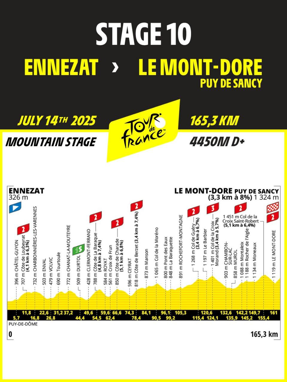 進入最後40公里,突圍集團不斷遭到篩選,最終僅剩6人維持領先,包括Simon Yates、Ben Healy、Michael Storer、Thymen Arensman、Ben O’Connor與Quinn Simmons。決勝點來到終點前3.3公里、坡度8%的Le Mont-Dore坡,Simon Yates發動關鍵攻擊,僅有Thymen Arensman短暫追近,最終他也被領先者甩開,Simon Yates最終獨走奪下生涯第三座環法單站冠軍。