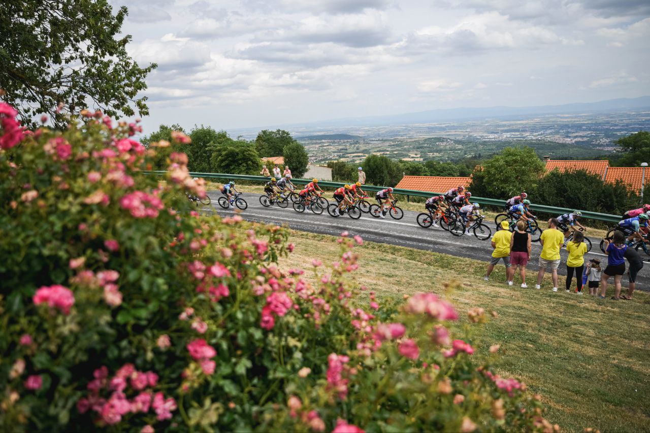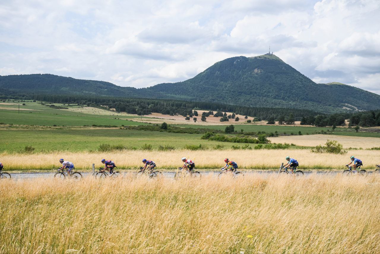 比賽剛開賽僅17公里,包含Côte de Loubeyrat的第一個登山點,就形成了由29人組成的大規模突圍集團,當中不乏大牌車手。賽事中段,法國車手Lenny Martinez持續搶下登山積分,他也穿上了圓點衫,有趣的是他的祖父Mariano Martinez在1979年巴士底日也曾在環法奪得單站勝利。