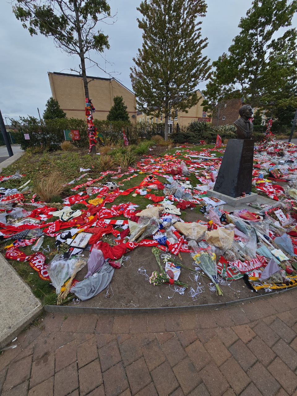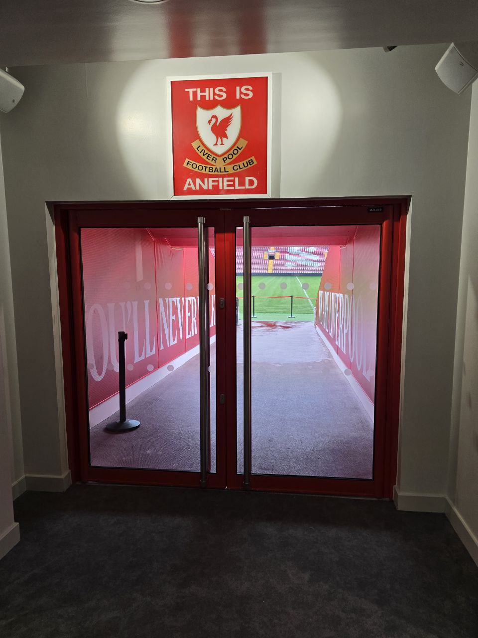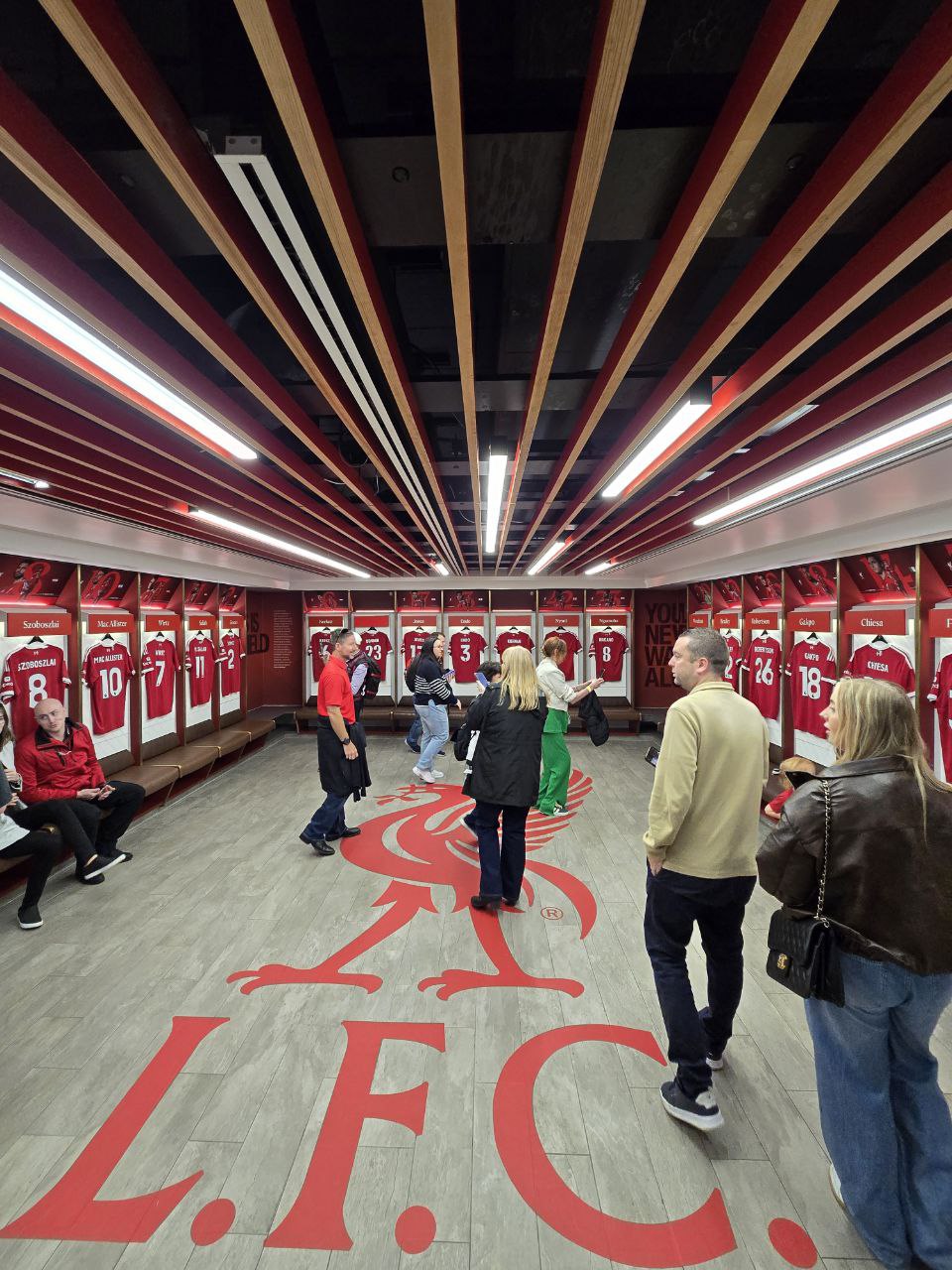 和大部分歐洲頂級球隊一樣,利物浦也提供球場導覽活動,只要事先在網路上預訂即可。導覽日通常安排在沒有比賽的日子,抵達球場後在集合點報到,便能展開一段深入的體驗。Anfield距離市中心稍微遠了一些,搭乘26號公車大約二十多分鐘能抵達。特別的是,因為前陣子球員Diogo Jota意外離世,球場外至今仍堆滿球迷留下的鮮花、圍巾與球衣,成為一片充滿感情的追思角落。