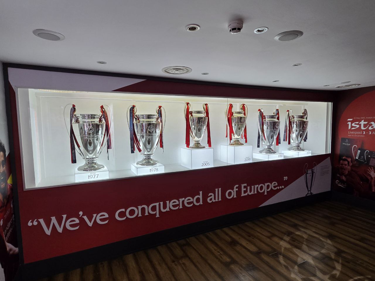 結束球場參觀後,接著會參觀利物浦FC博物館。裡面收藏了許多球員實戰物品以及大大小小的獎盃,讓你更能感受到這支球隊在足球史上輝煌的表現。