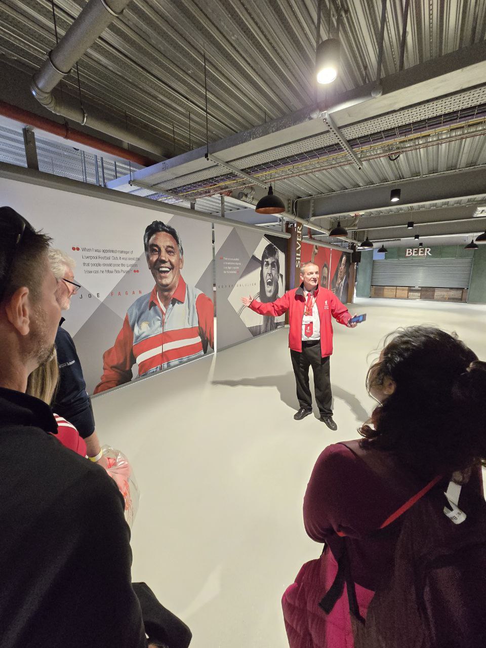 正式導覽開始時,它會發給你一台導覽機器以及一副印有球隊Logo的有線耳機(耳機可以帶走),雖說有導覽機器但還是會有一個導覽員邊帶路邊解說。我不確定有幾位不同的解說員,但不得不說我這場的解說員非常有魅力。在介紹時你完全能感受到他對於利物浦這支球隊的熱愛(雖然他的腔調有點難懂),除了介紹外還要時不時唱歌帶動氣氛,偶爾還會用言語挖苦其他球隊,對於利物浦球迷來說一定非常有感染力。