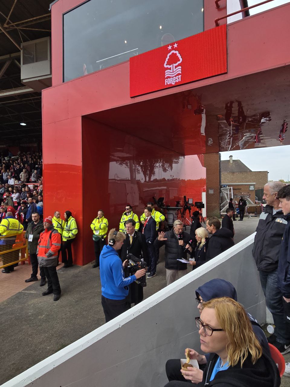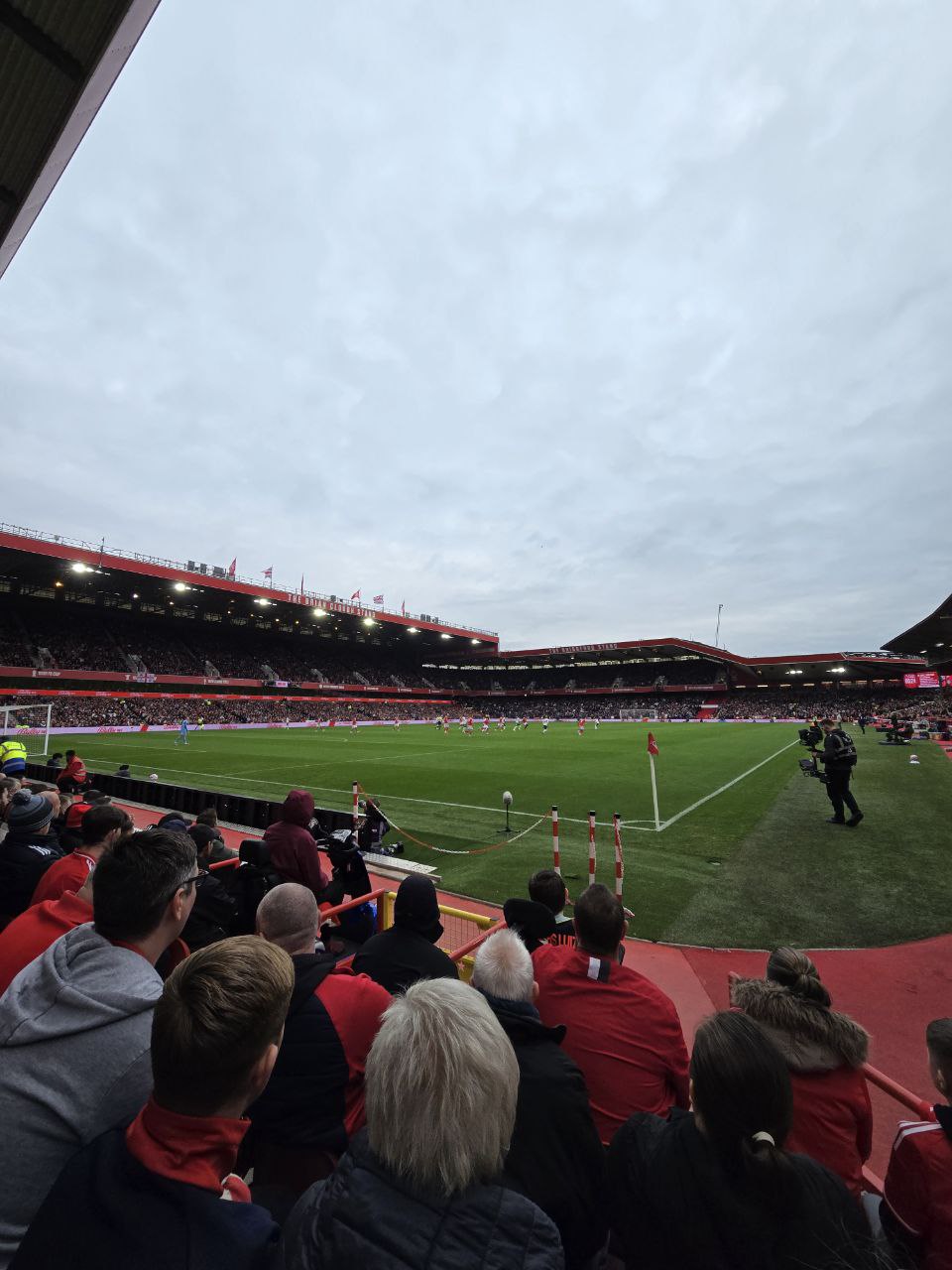 當第三球進網後,現場出現一陣明顯的離席潮,許多球迷難掩失望提早離場。畢竟看到自己支持的球隊在主場被徹底壓制,心裡難免不是滋味,尤其客場球迷還在旁邊高聲唱歌慶祝。不過,我今天也見證到了英國足球迷的真性情,賽前大聲合唱、比賽中激情吶喊、痛罵球員或裁判(不分對手還是自己人,不知道聽到幾次”bloody hell”還有F-word)。雖然City Ground僅能容納三萬人左右,但現場的聲浪與氛圍,絕對不輸給任何大型體育館。